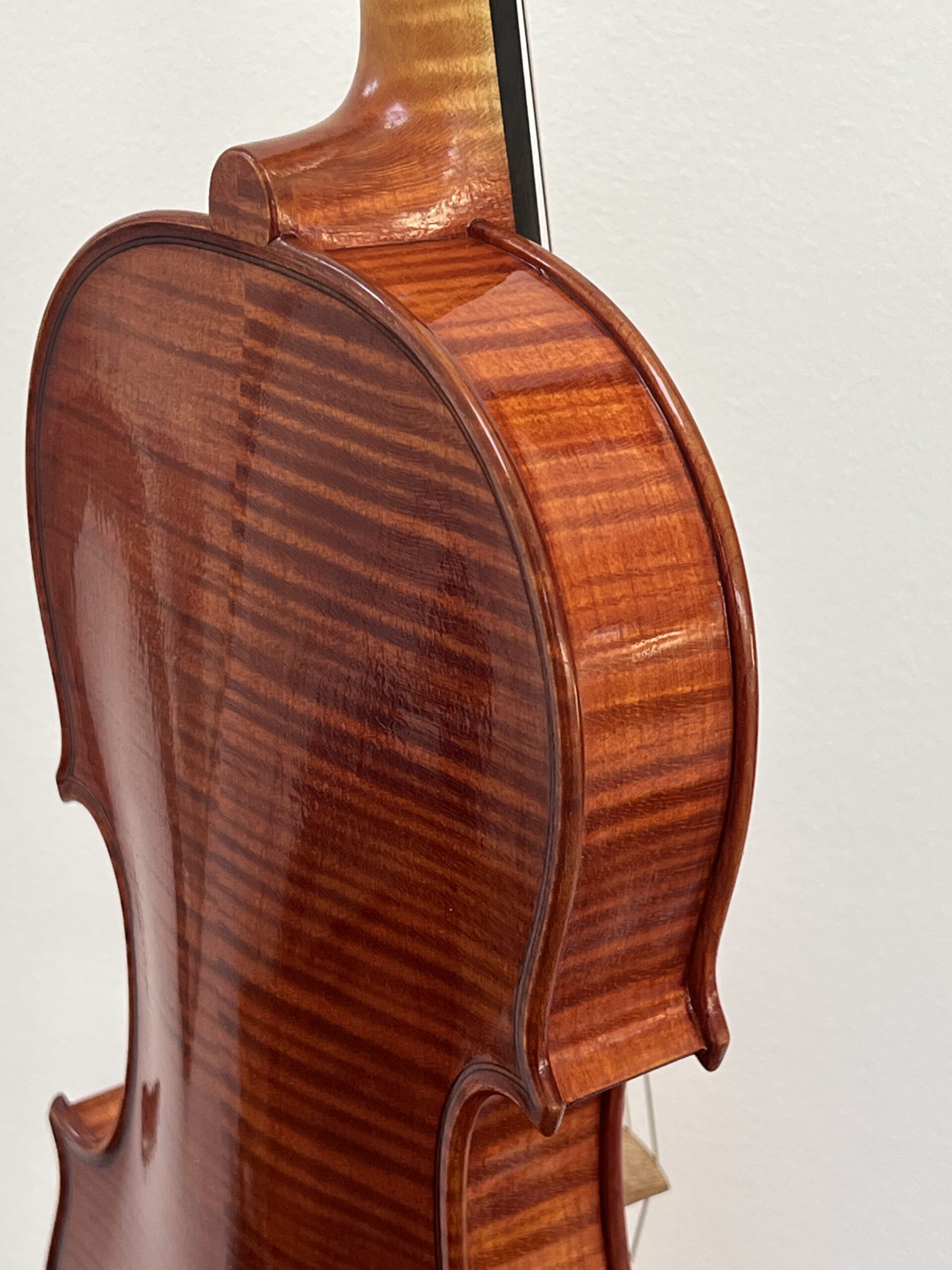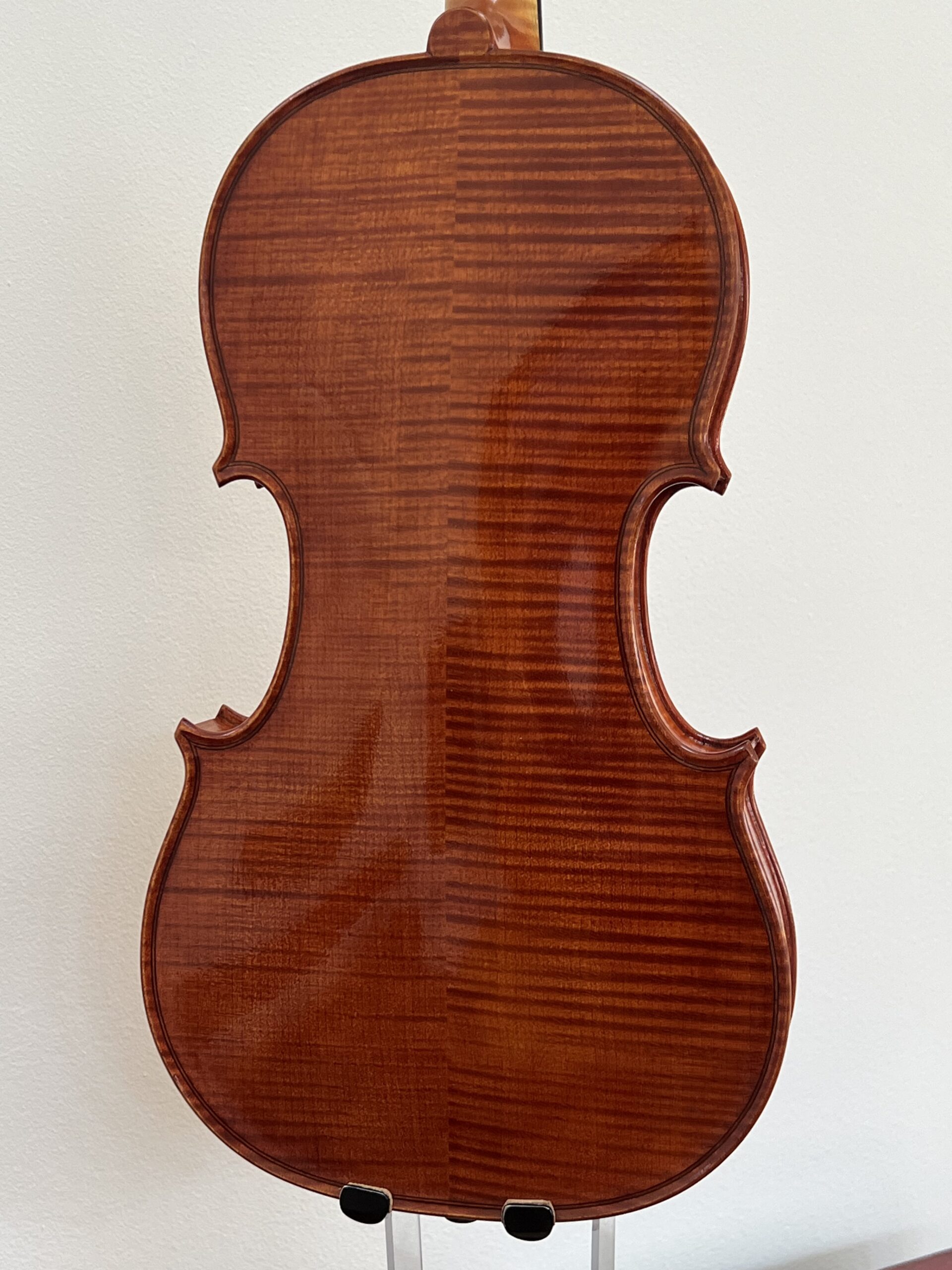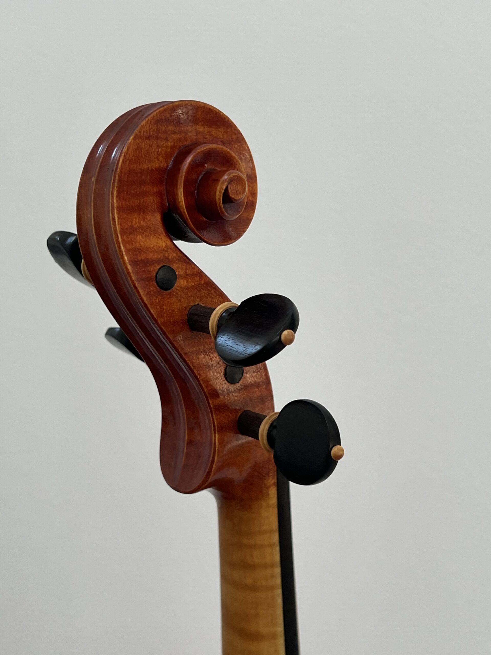 In 2001, I began using a system of violin making in which the instrument is strung up “in the white”, and key relationships between air and wood are harmonically adjusted before any varnish is applied.